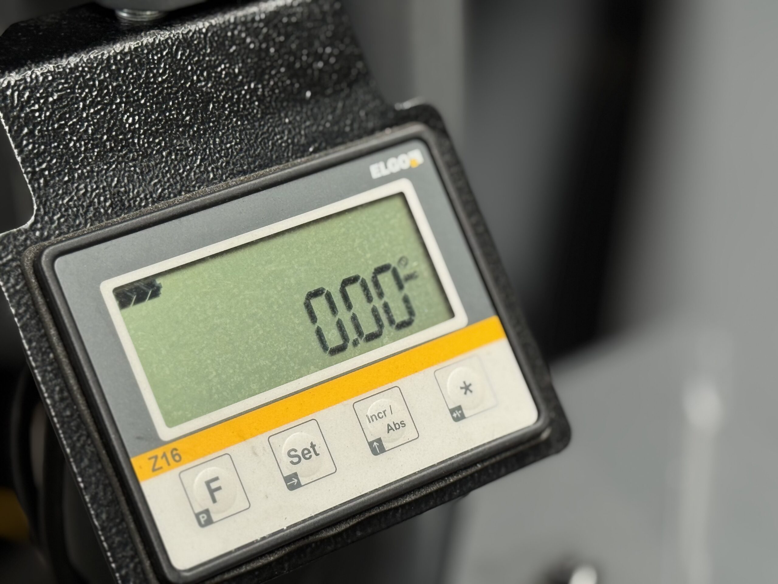 Elektroniczny wyświetlacz kąta ramienia pozwala na precyzyjne ustawienie kąta ramienia, co pozwala uniknąć niedokładności będących efektem błędnego odczytu kąta ze skali. Jego zastosowanie to również krótszy czas przygotowania maszyny do pracy. Idealnie sprawdza się przy częstym cięciu.