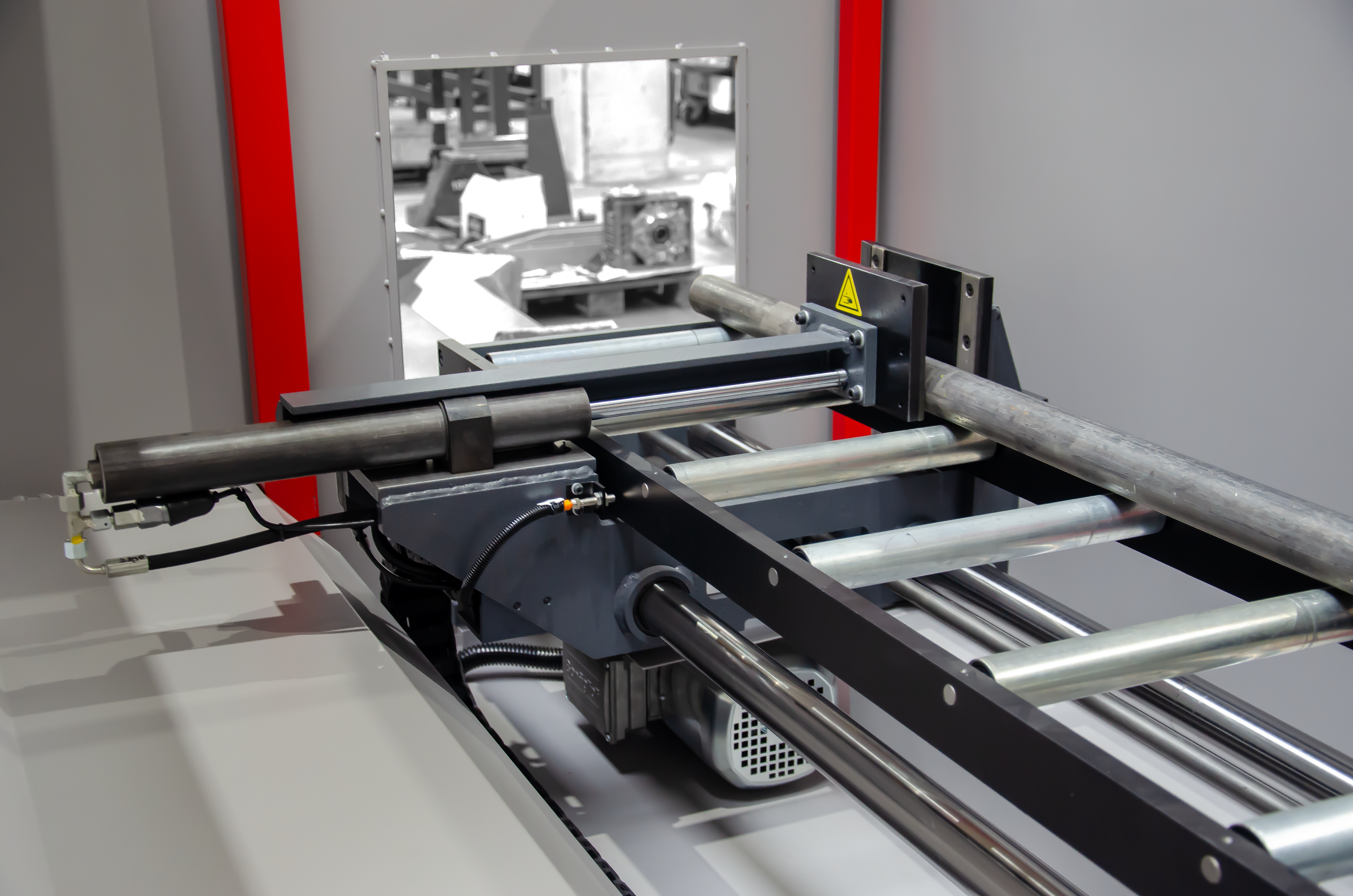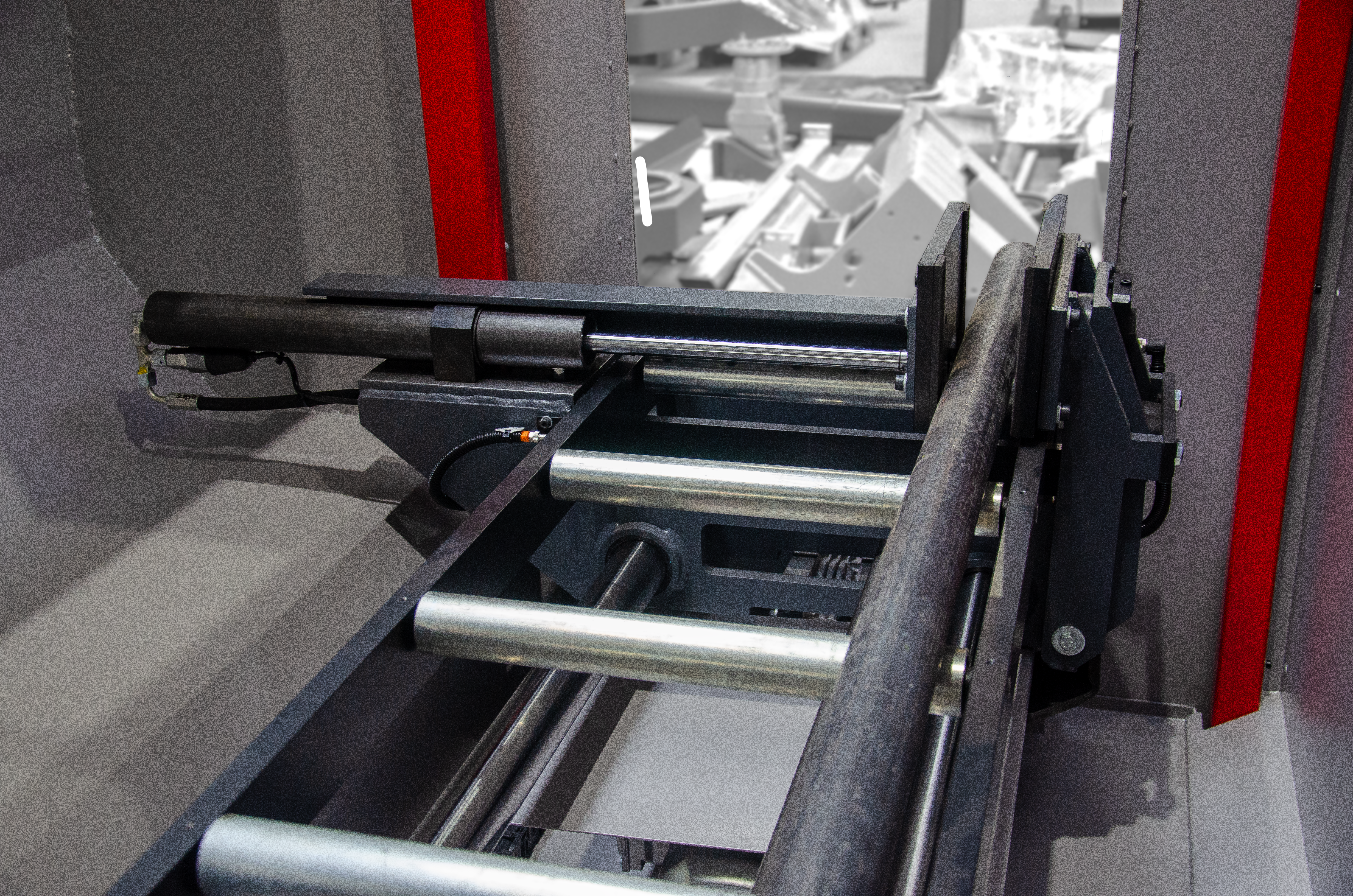 Maksymalna długość pojedynczego wsadu wynosi 1500 mm. Pełny cykl roboczy jest realizowany po zaprogramowaniu długości i liczby elementów, które mają być poddane obróbce oraz kątów po każdej stronie elementu.