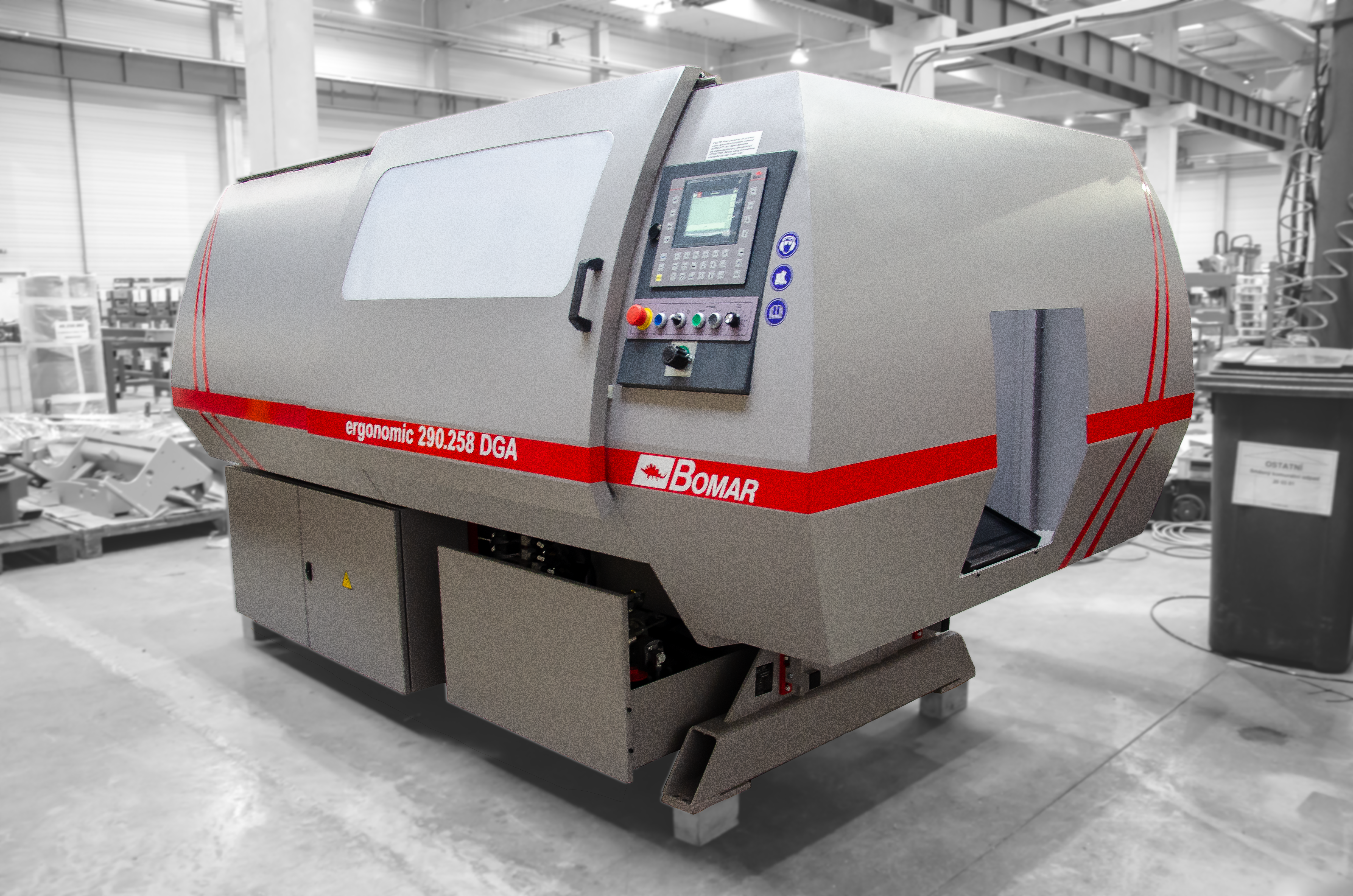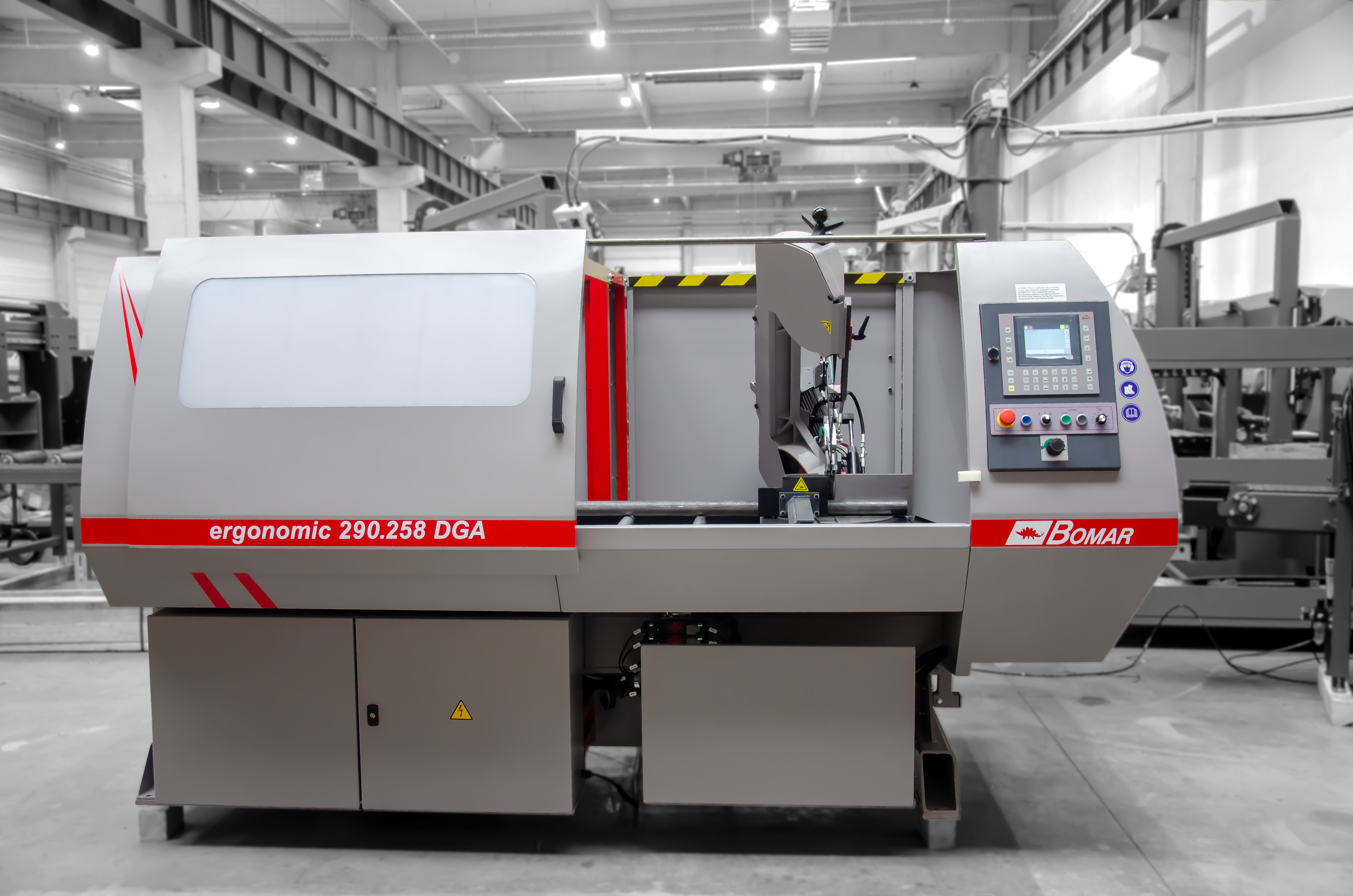 Ergonomic 290.258 DGA – Automatyczna przecinarka taśmowa CNC z płynnym posuwem ramienia regulowanym hydraulicznie, 2 imadła sterowane hydraulicznie.