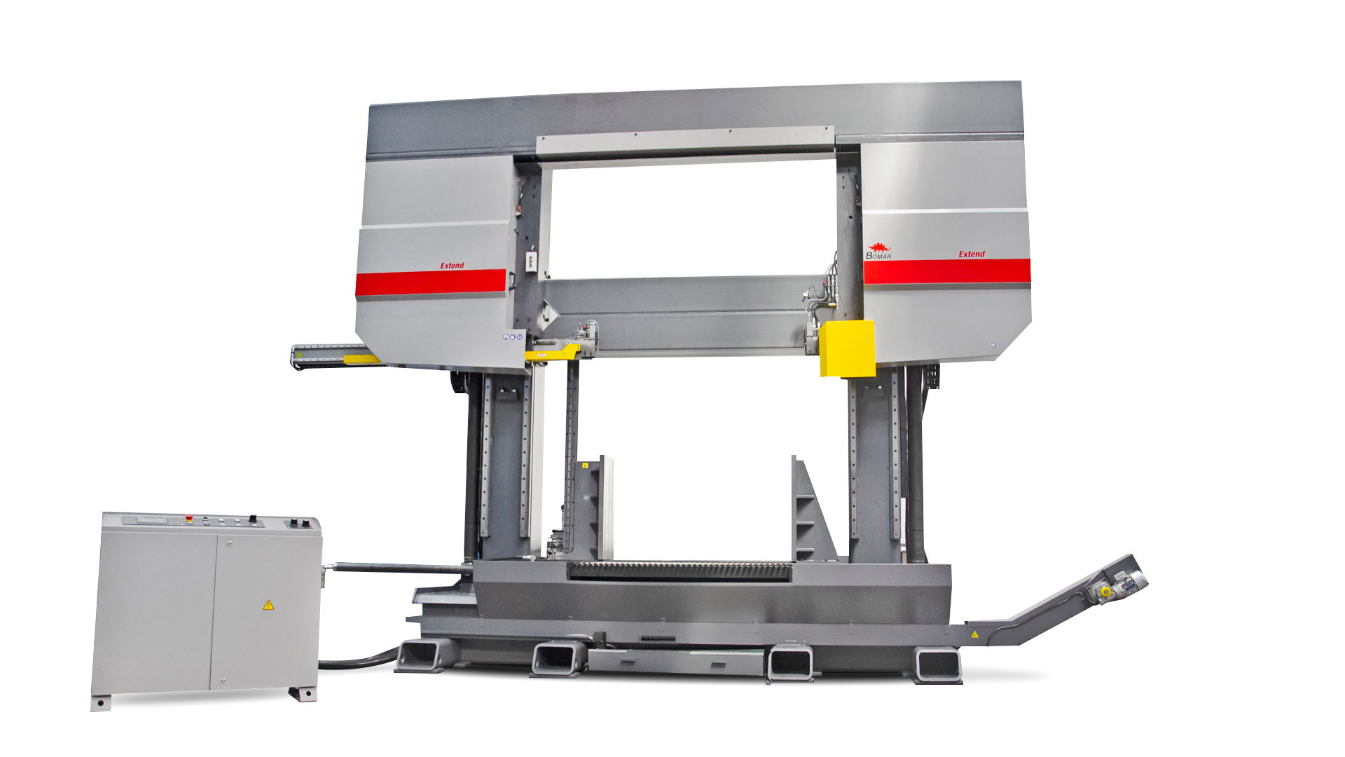 Extend 2020 jest solidną, hydrauliczną, półautomatyczną maszyną z konstrukcją dwu kolumnową zaprojektowaną dla serii i wysokoproduktywnego cięcia materiału pod katem 90°.