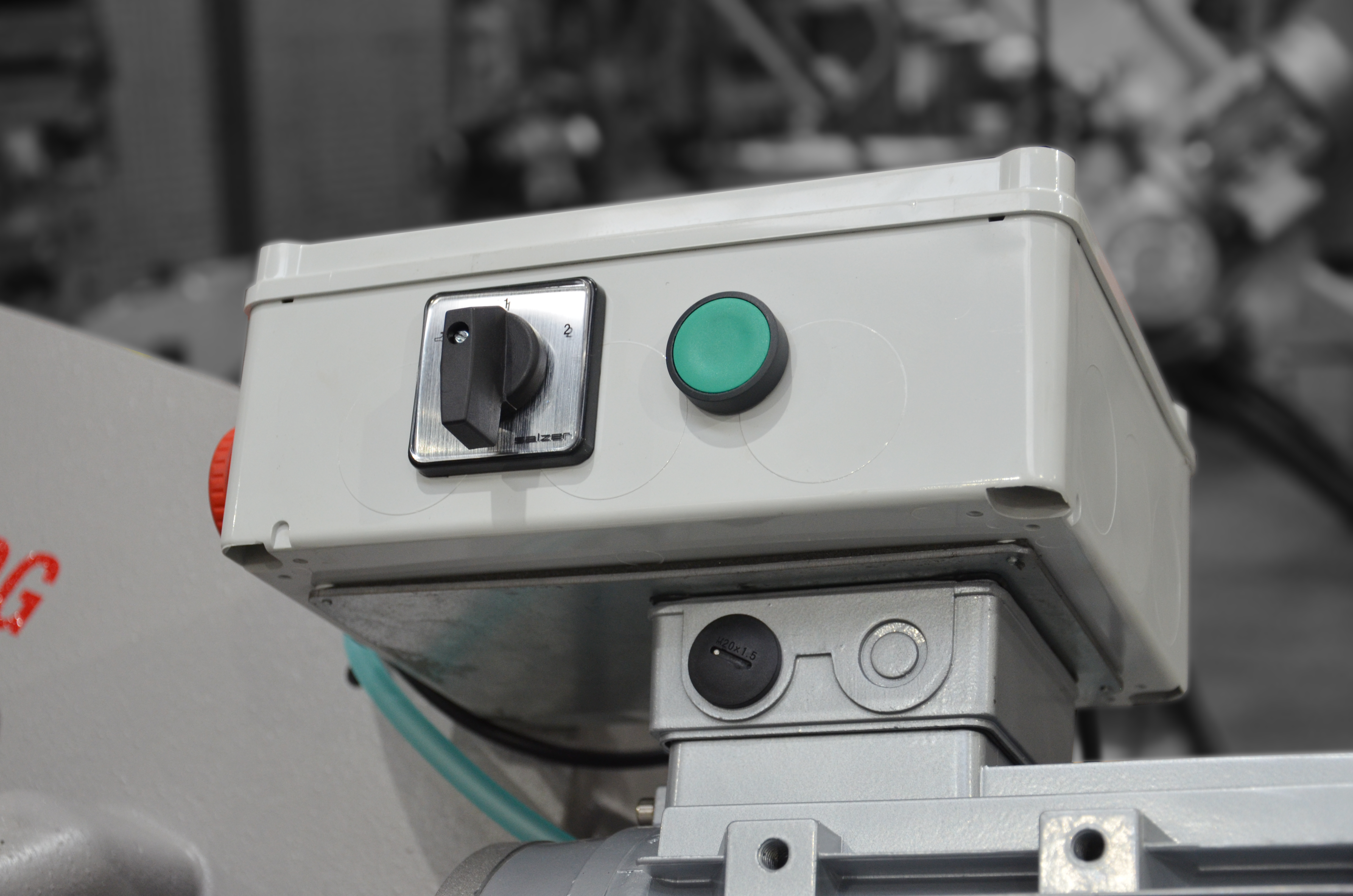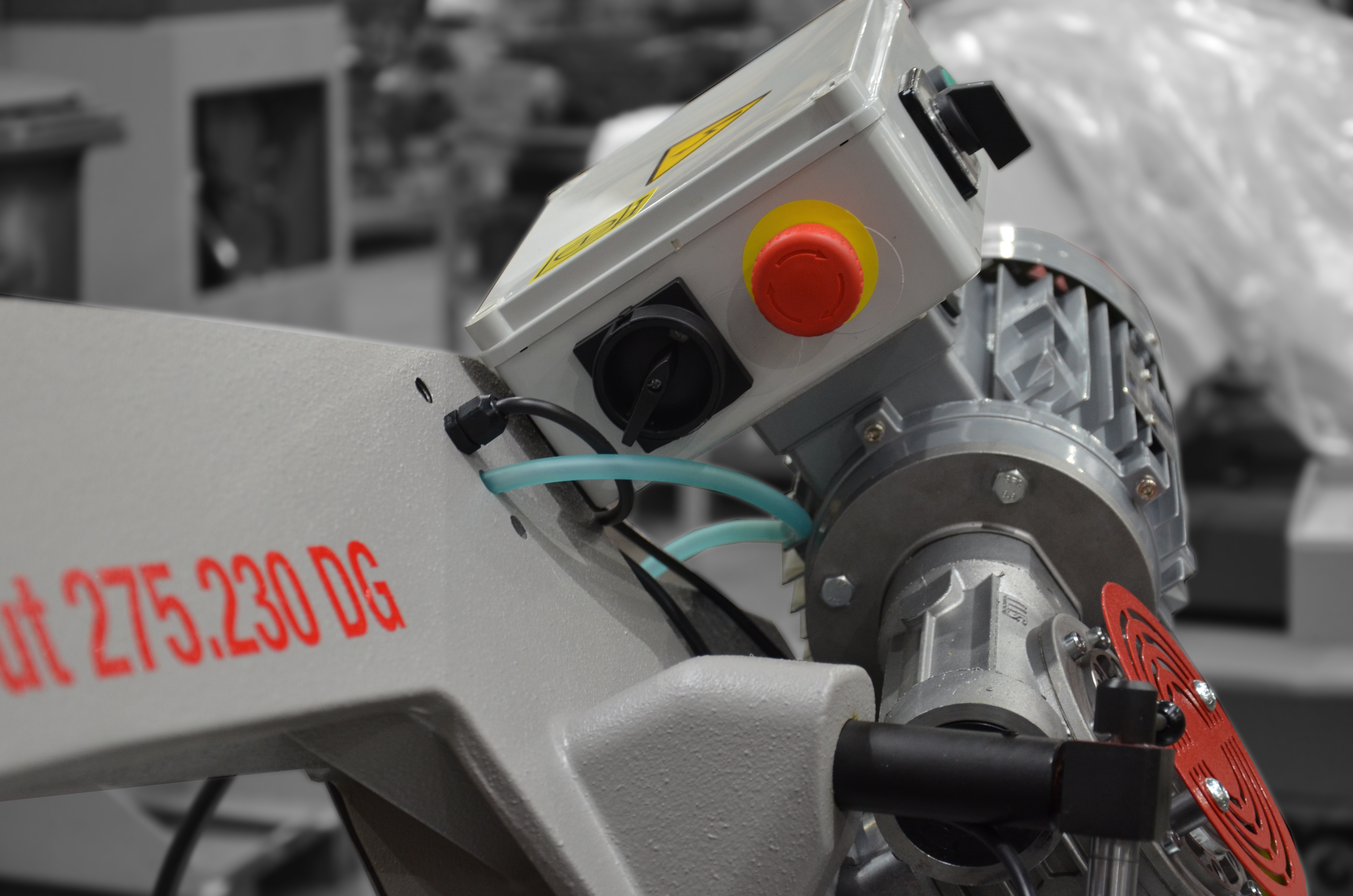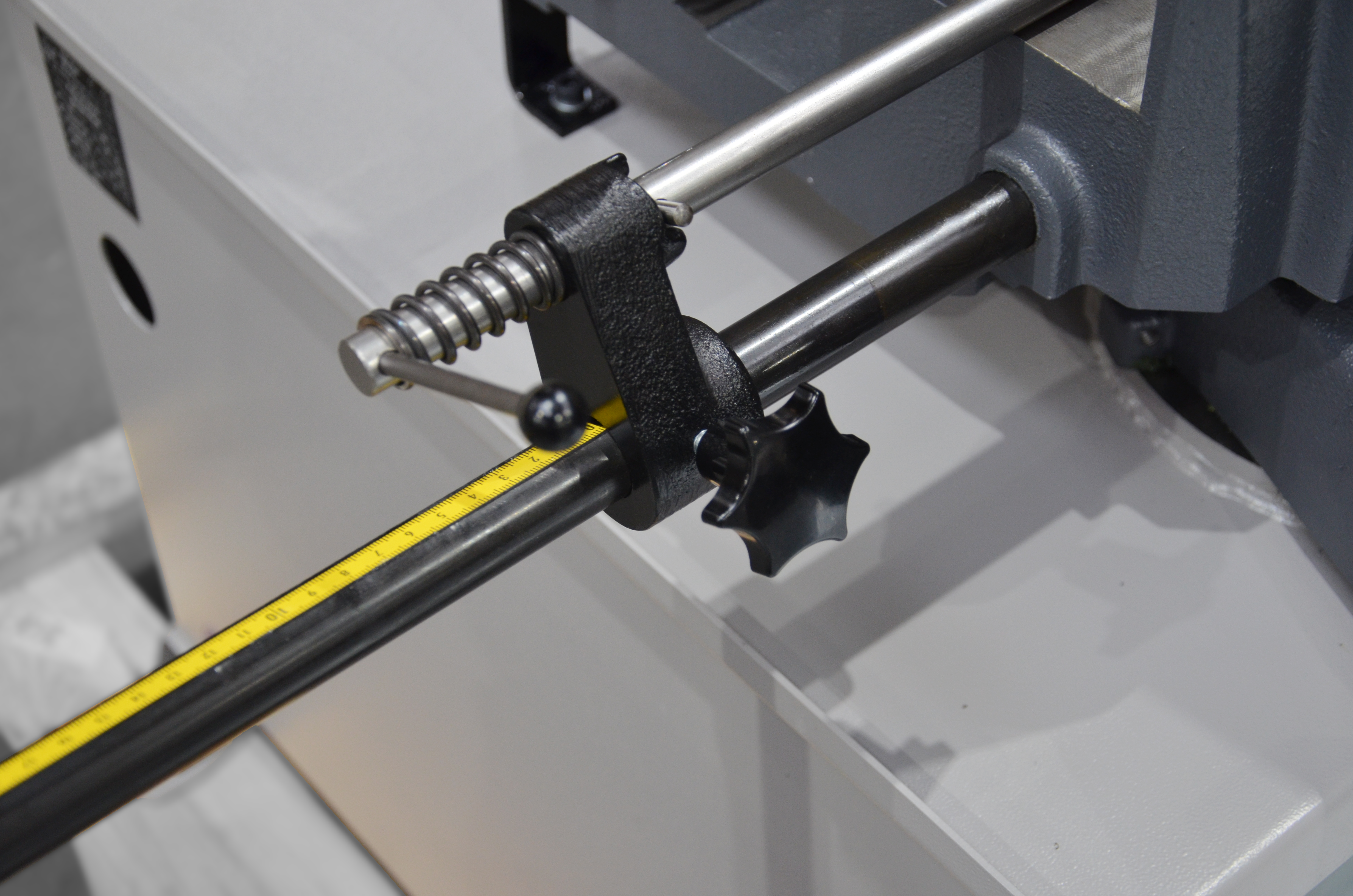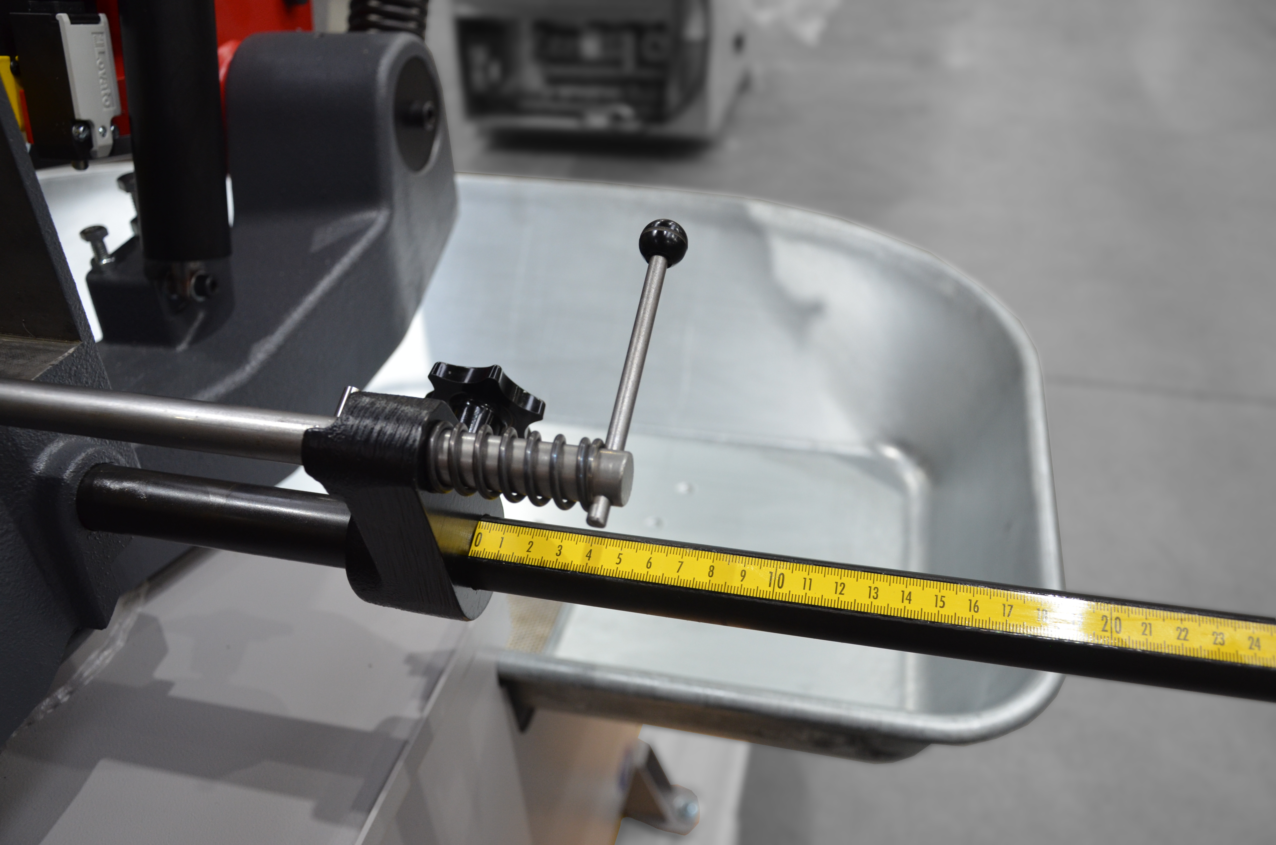 Wyposażenie standardowe składa się z regulowanego ogranicznika długości (zderzaka). Napęd taśmy piły stanowi dwubiegowy silnik fabryczny oraz przekładnia ślimakowa pracująca w kąpieli olejowej. Prędkość przesuwu taśmy wynosi od 40 m/min do 80 m/min przy stałym położeniu zamocowanego materiału.