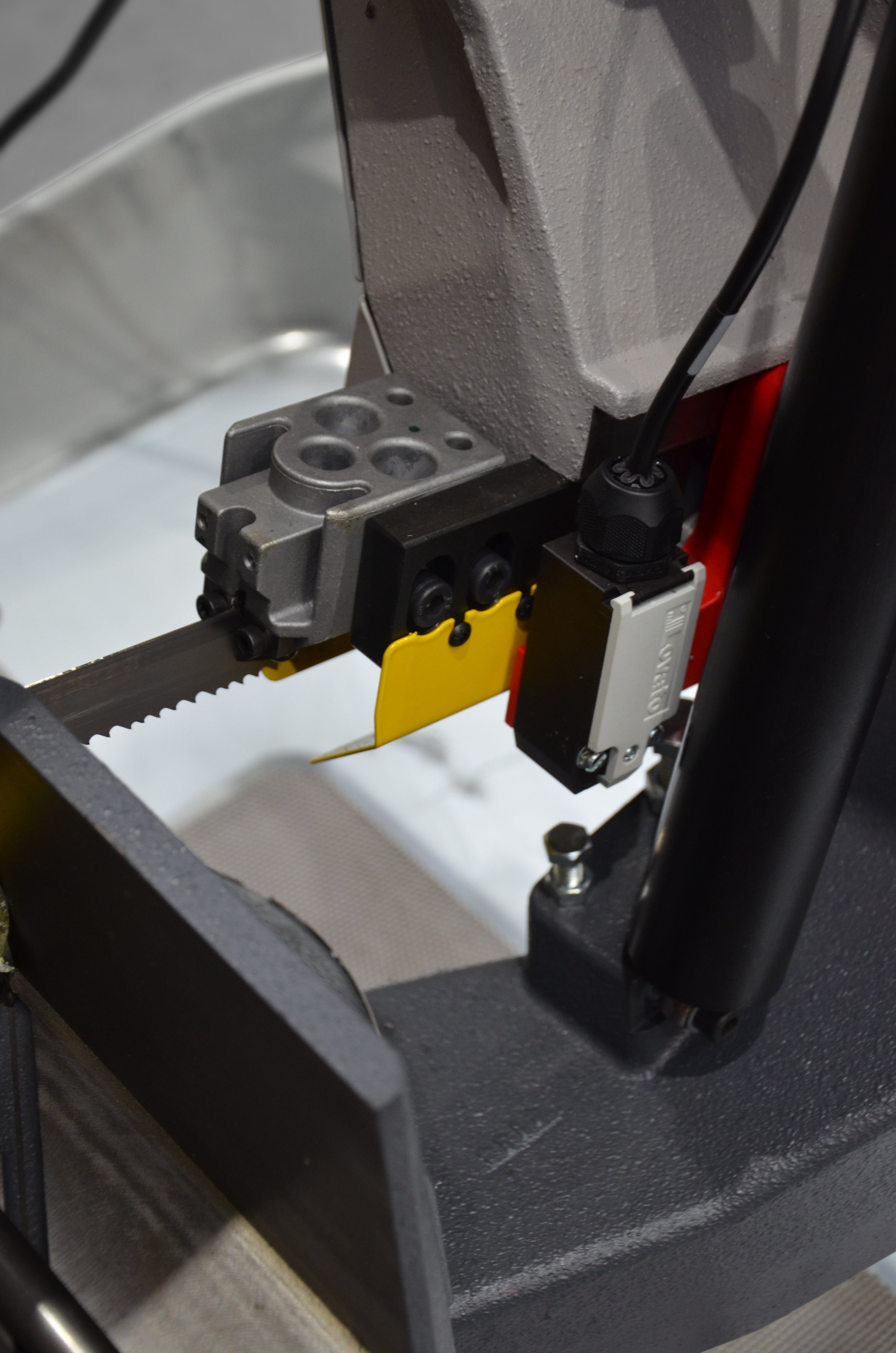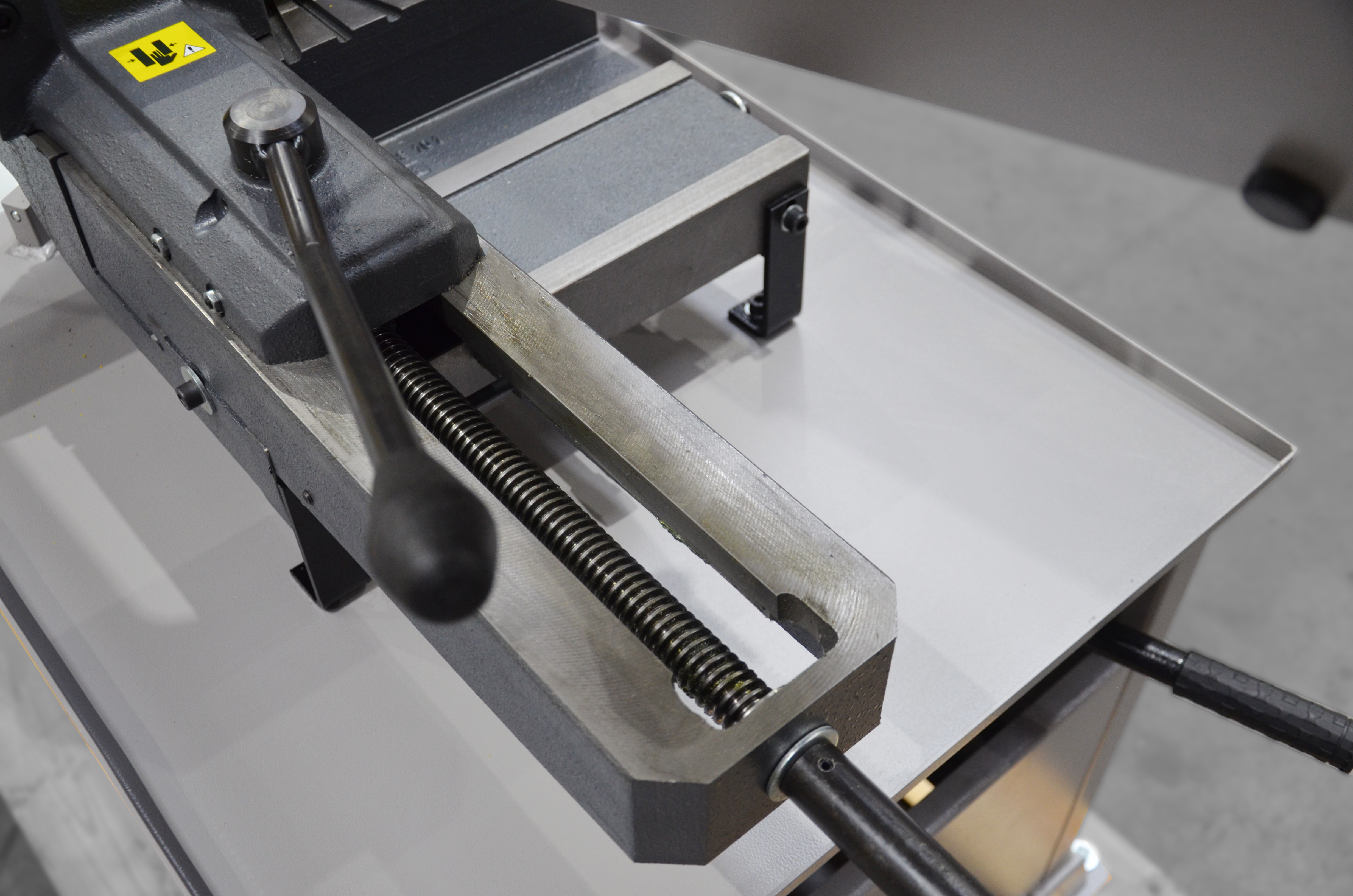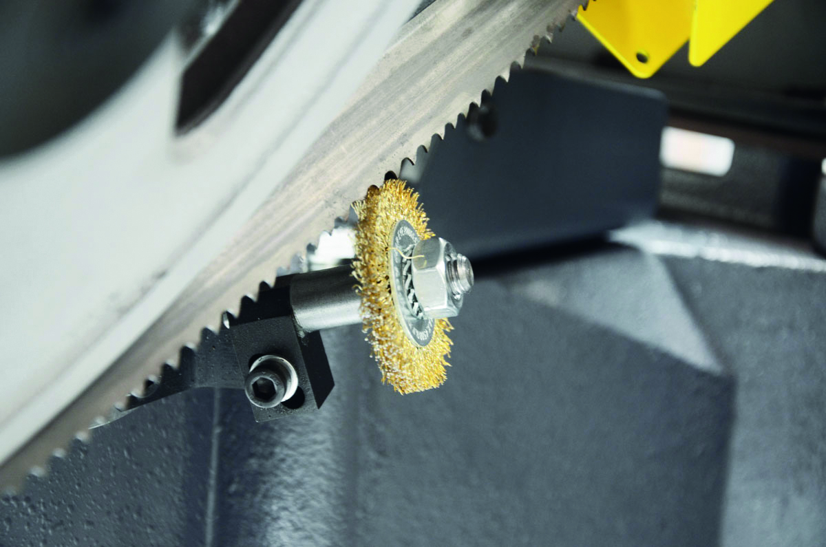 Doskonała wydajność maszyny oraz długi okres użytkowania taśmy wynikają z tych cech: precyzyjne prowadzenie taśmy (prowadnica) osadzona w łożyskach stożkowych z wstępnym zaciskiem i synchronicznie pracującą szczotką do usuwania opiłków.