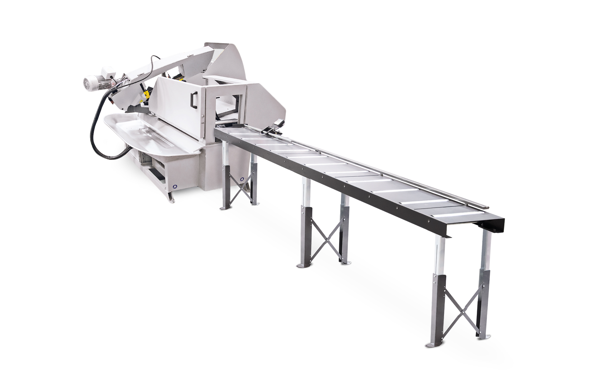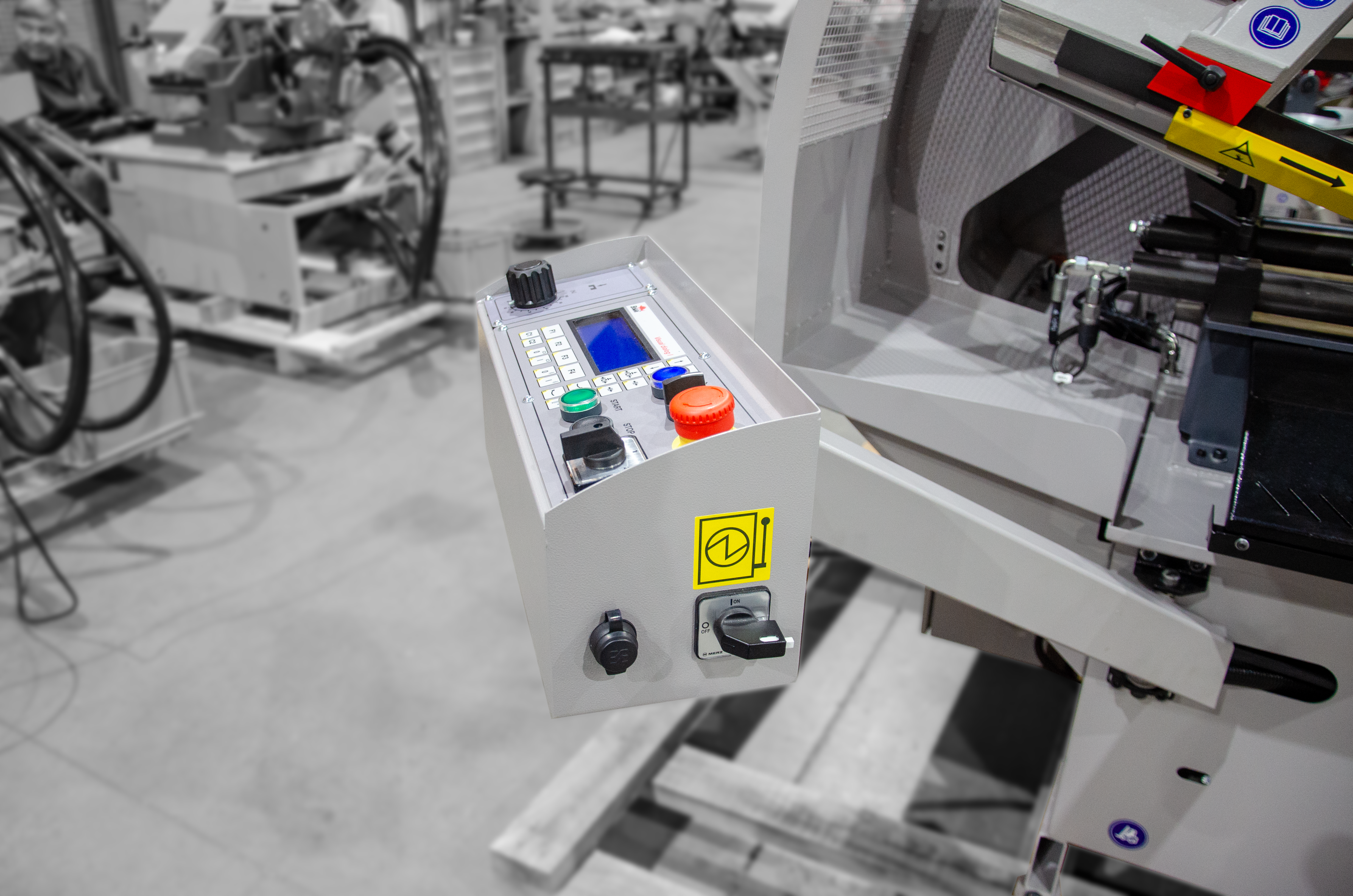 Automatyczna piła taśmowa ze sterowaniem NC. Wymaganą długość materiału można bardzo łatwo ustawić na ruchomym panelu sterowania. Największą zaletą tej maszyny jest możliwość zaprogramowania różnych liczb kawałków materiału o różnych długościach, bez dalszej kontroli maszyny. Maksymalna długość pojedynczego podania wynosi 500 mm. Prosta kontrola maszyny z wiadomościami tekstowymi jest pokazana na podświetlanym czteroliniowy mwyświetlaczu. Po przełączeniu urządzenia w tryb ręczny można sterować wszystkimi funkcjami osobno. Pobieranie materiału, zaciskanie materiału i opuszczanie ramienia są sterowane hydraulicznie.