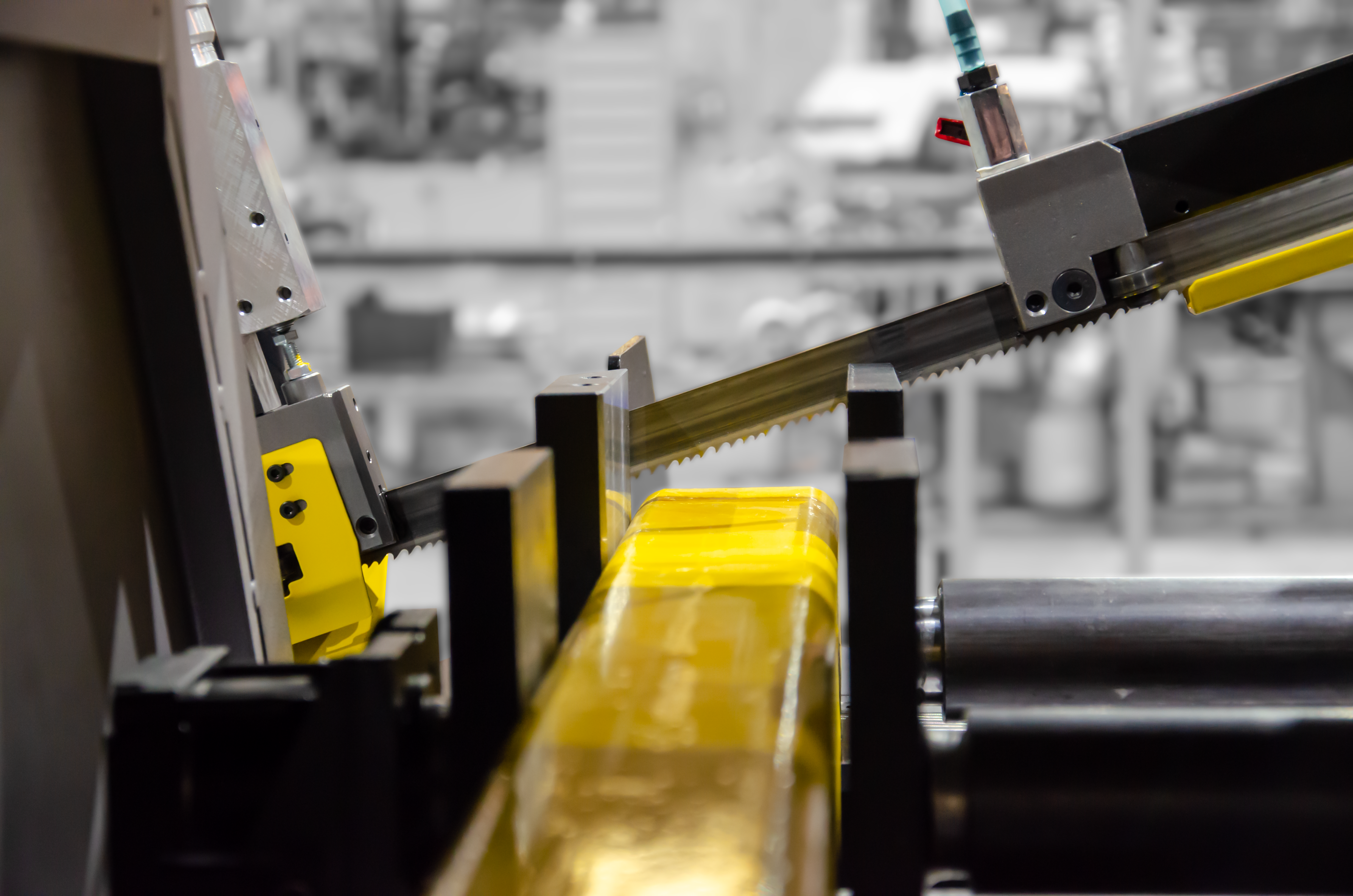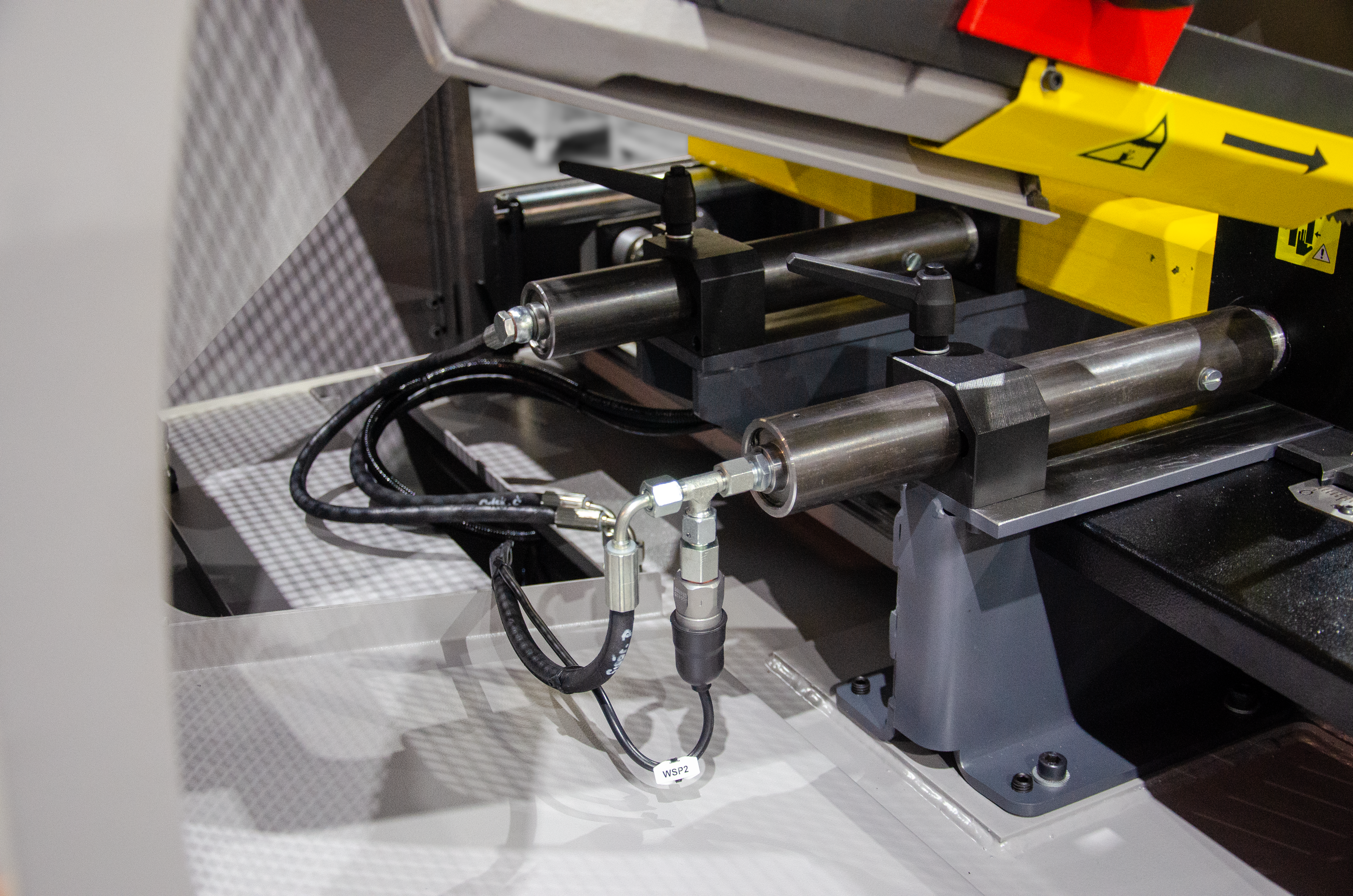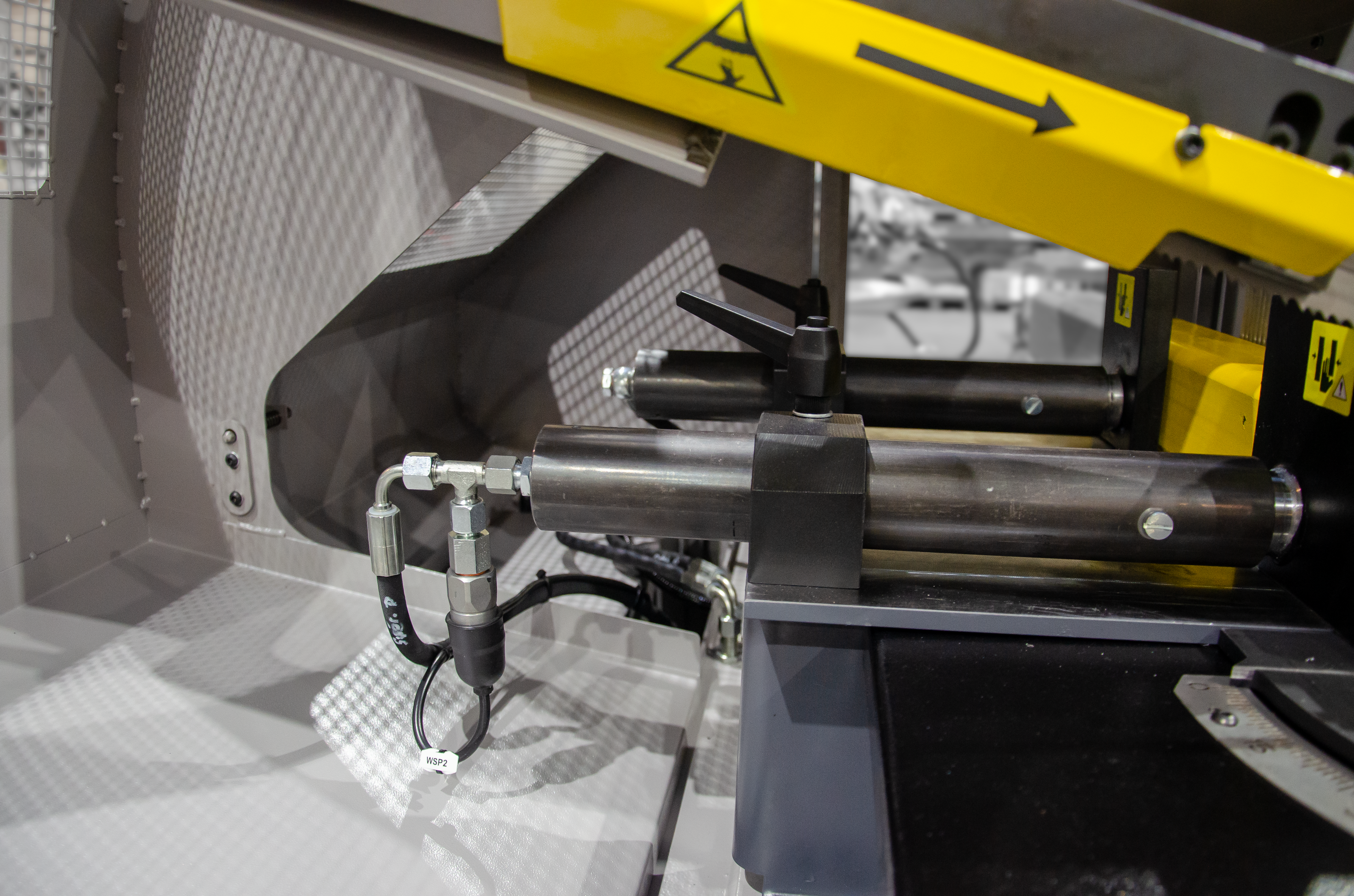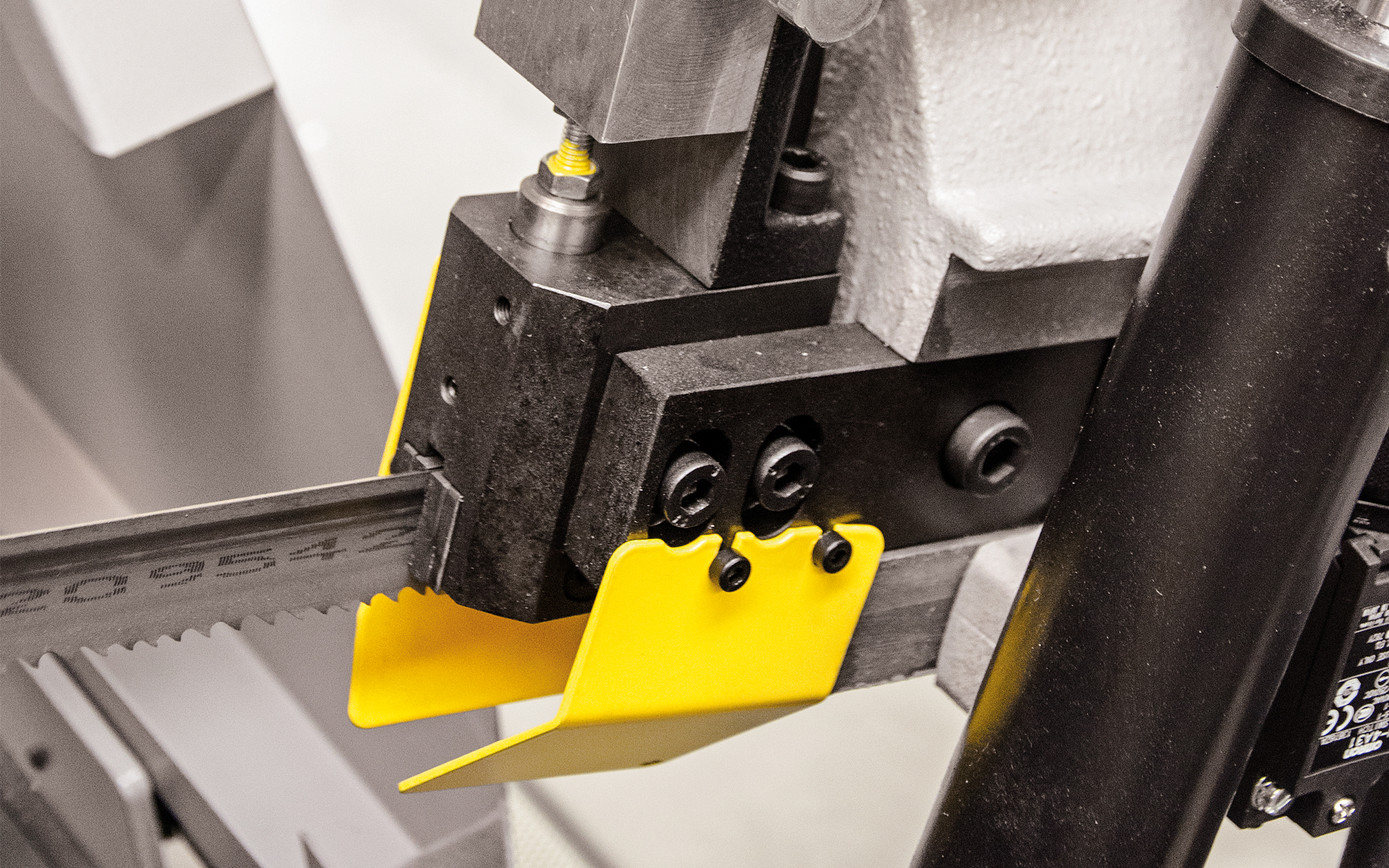 Ramię o dużej wytrzymałości jest wykonane z żeliwa szarego, co oznacza lepsze pochłanianie drgań podczas cięcia w porównaniu z ramieniem spawanym. Doskonała wydajność produkcji maszyny wynika z następujących cech: precyzyjna prowadnica taśmy piły wykonana z twardego stopu, połączenie osadzone w łożyskach stożkowych z wstępnym zaciskiem, taśma o wysokości 27 mm oraz szczotka do usuwania opiłków z synchronicznym przesuwem.