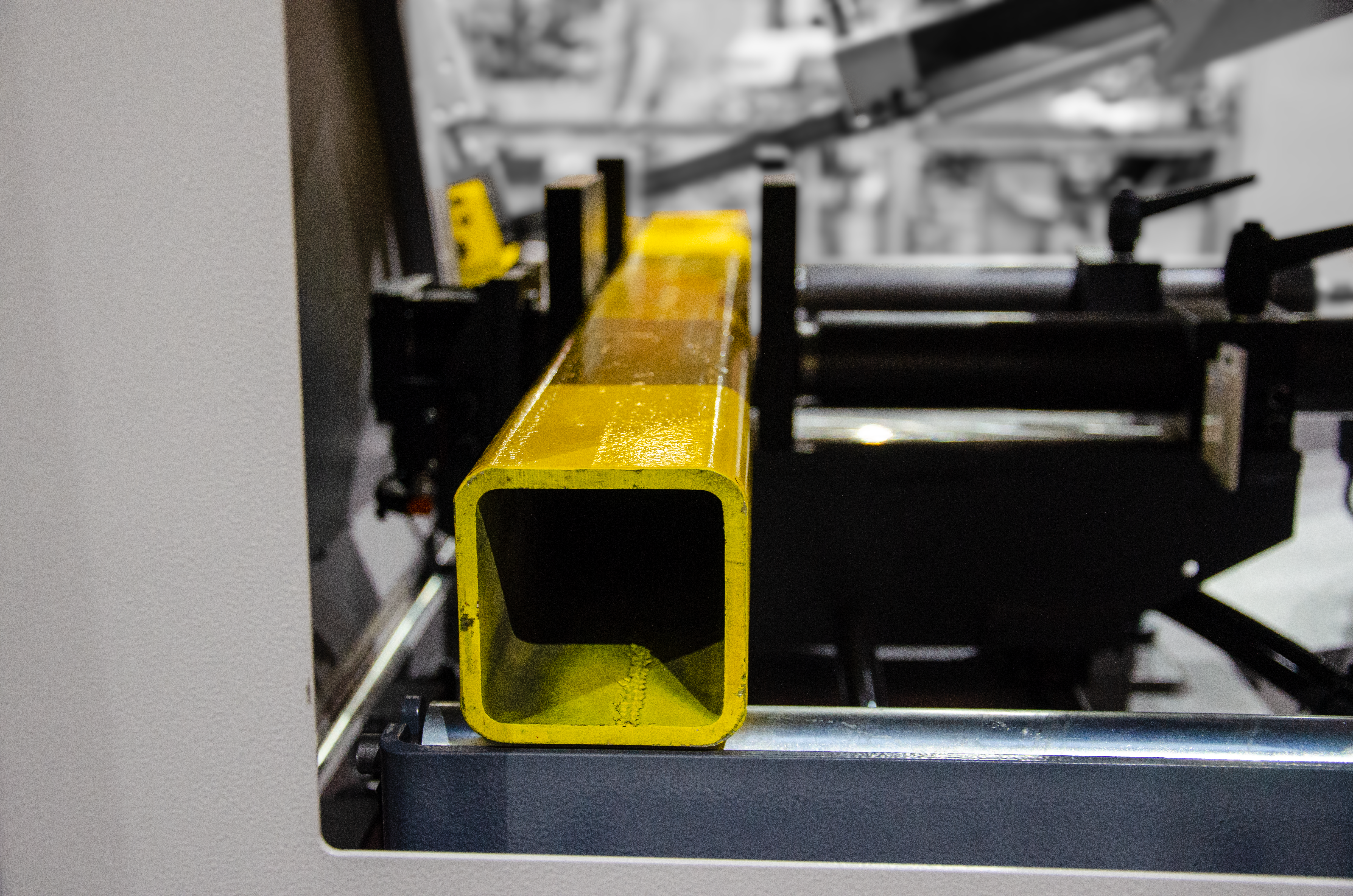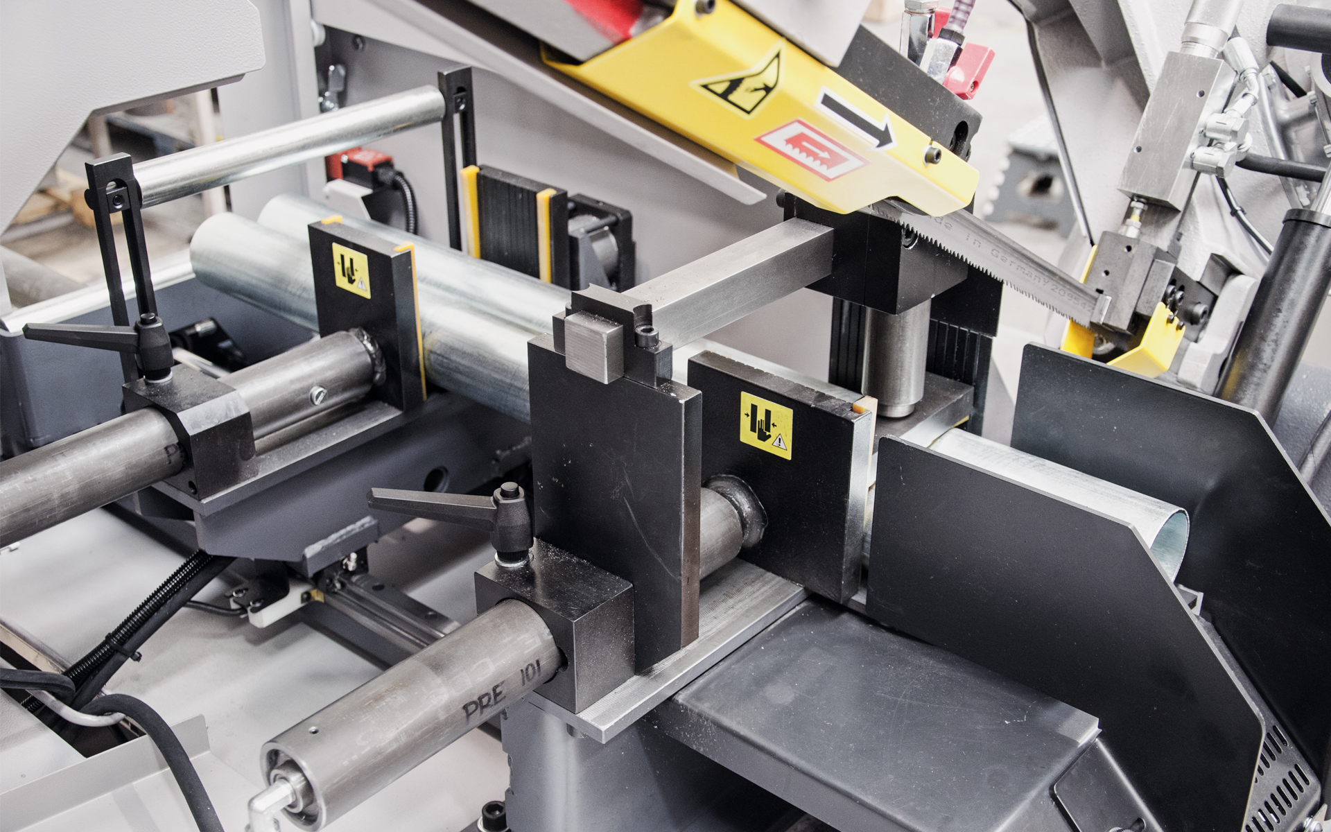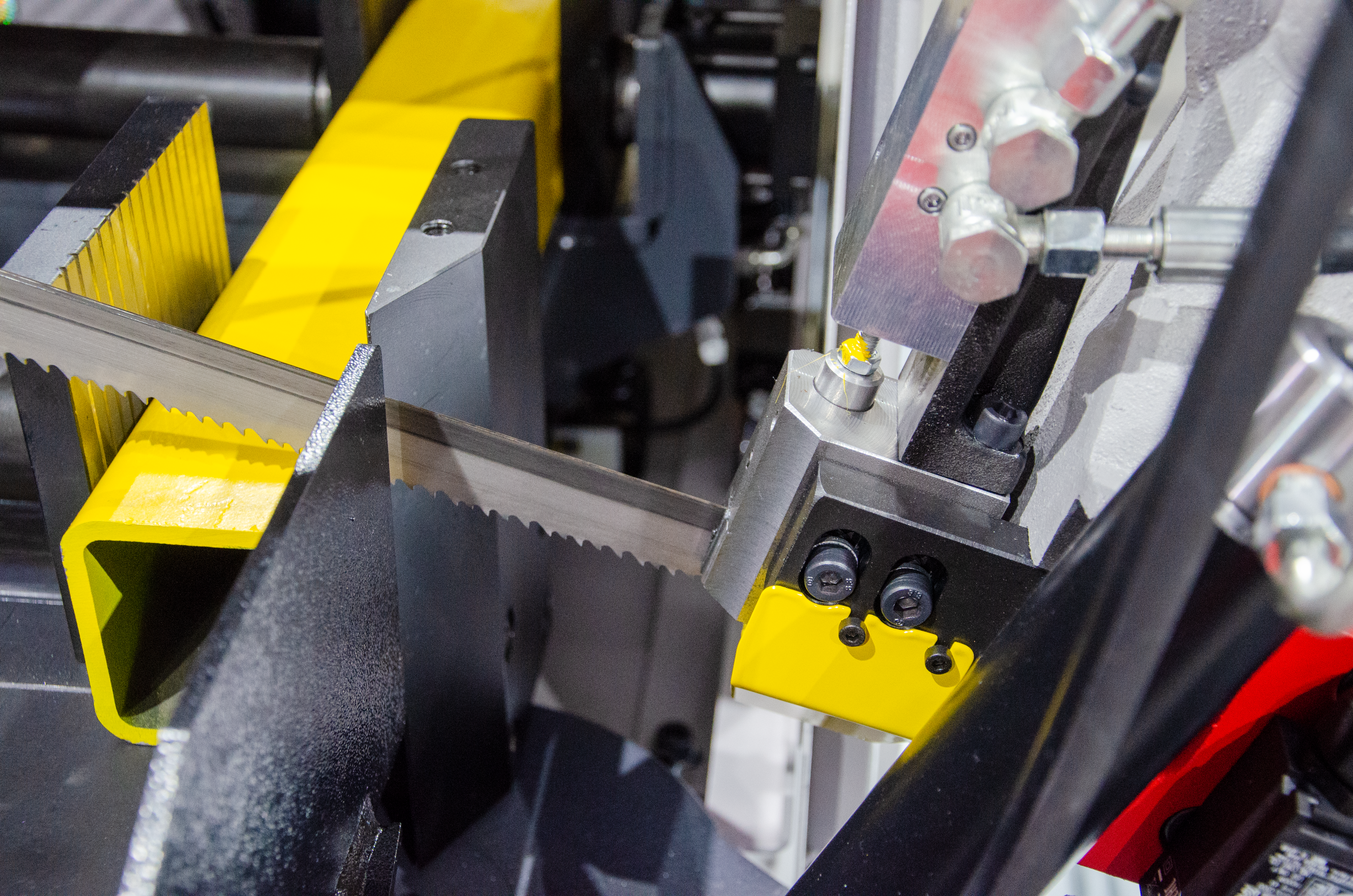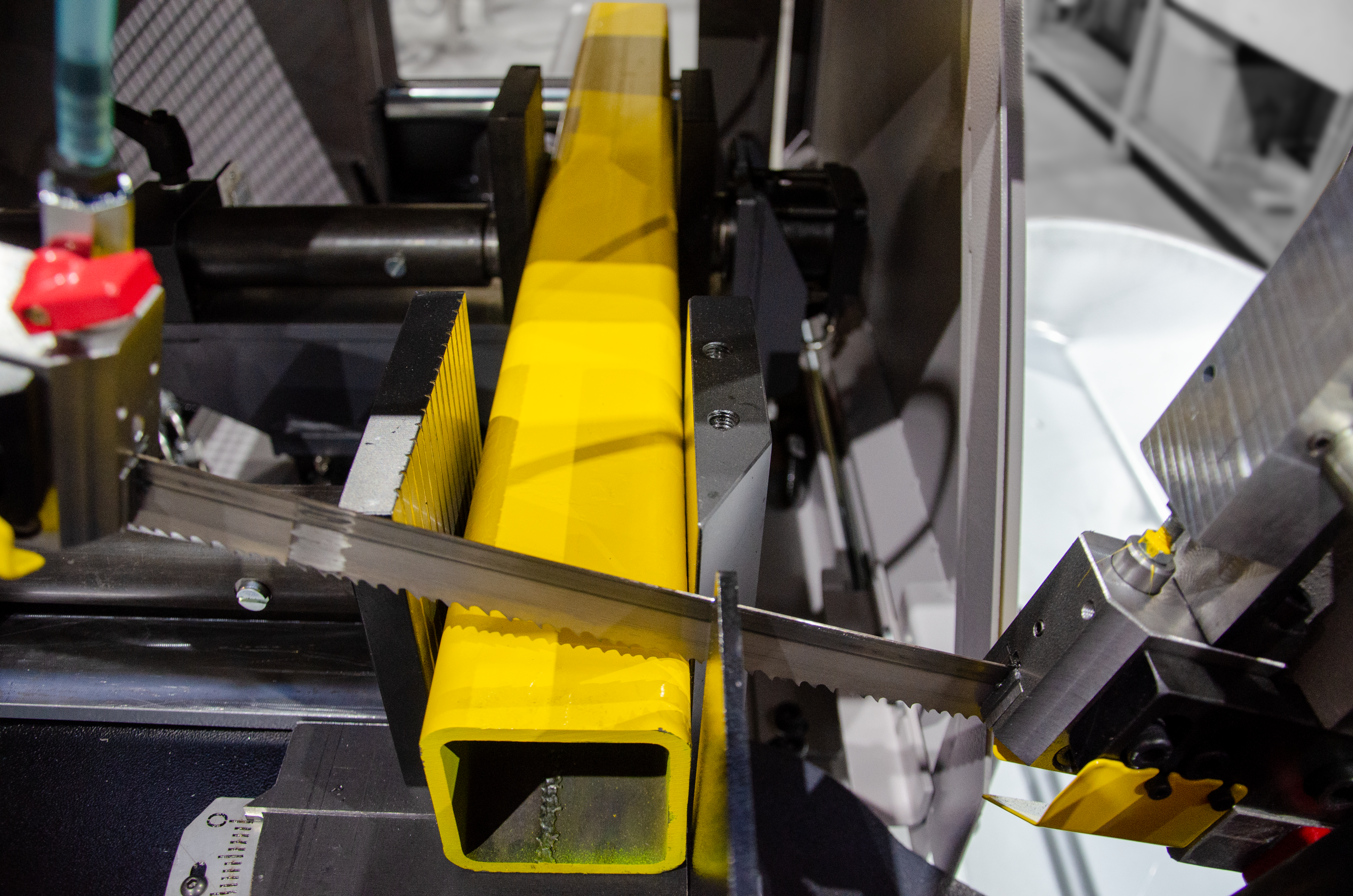Ta maszyna jest szczególnie odpowiednia do cięcia profili i materiałów pełnych o mniejszych przekrojach do 230mm a dokładność jednego posuwu to 0,2 mm.