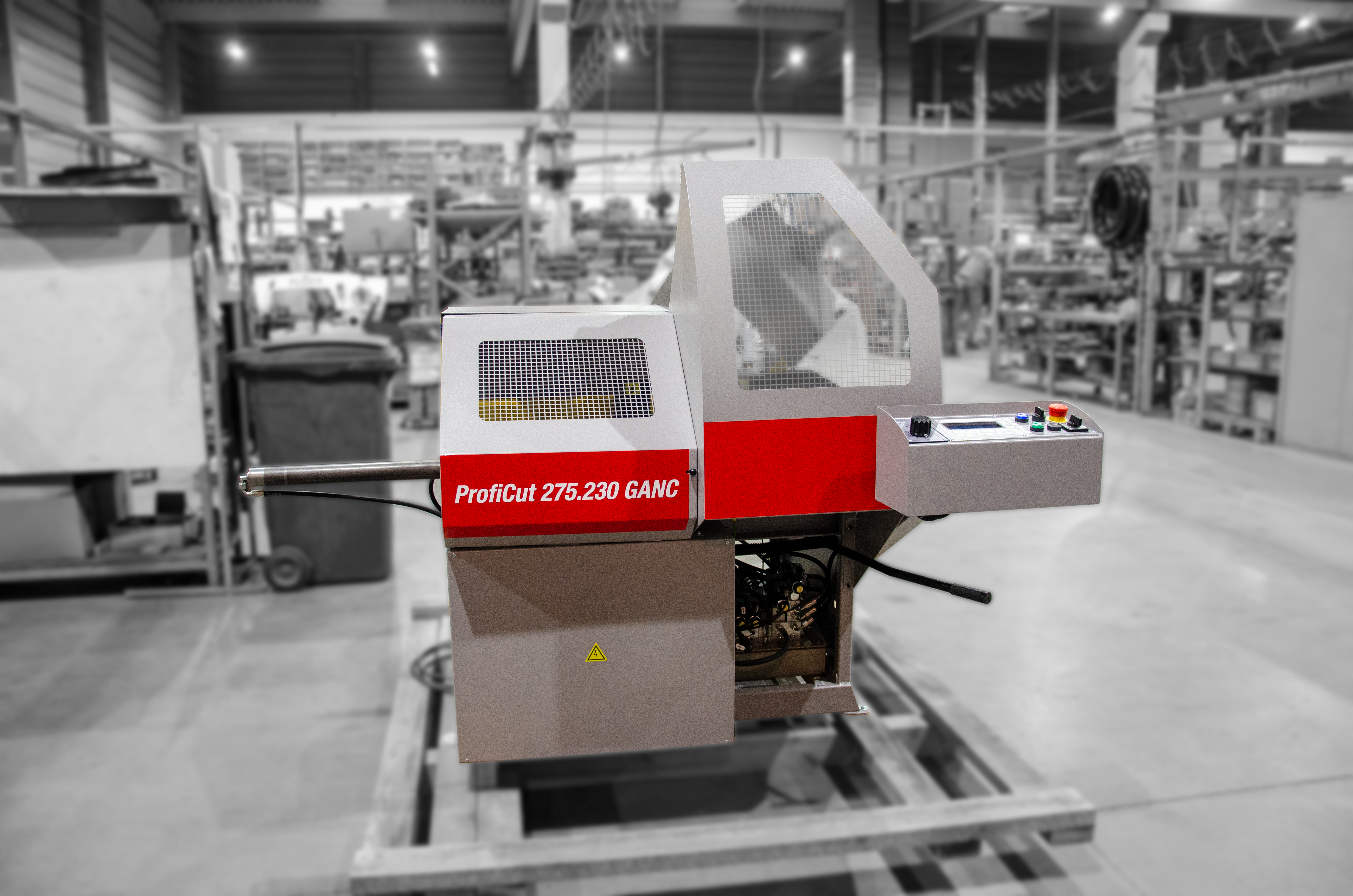 Proficut 275.230GANC – Automatyczna przecinarka taśmowa CNC z płynnym posuwem ramienia regulowanym hydraulicznie, 2 imadła sterowane hydraulicznie.