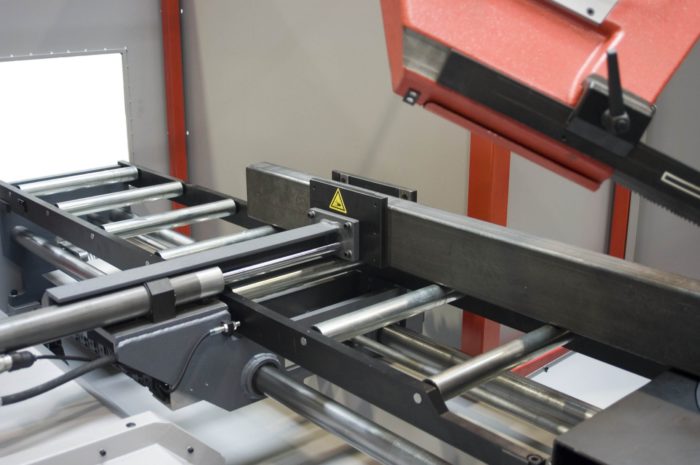 Ramię o dużej wytrzymałości jest wykonane z żeliwa szarego, co oznacza lepsze pochłanianie drgań podczas cięcia. Doskonała wydajność wycinania wynika z następujących cech: precyzyjna prowadnica taśmy piły wykonana z twardego stopu, połączenie osadzone w łożyskach stożkowych z wstępnym zaciskiem, taśma o wysokości 27 mm oraz szczotka do usuwania opiłków z synchronicznym przesuwem.