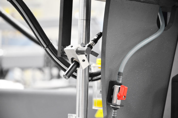 Zaciskanie materiału jest płynne za pomocą siłowników hydraulicznych pełnokomorowych. Do cienkościennych materiałów można stosować regulację ciśnienia w wężu, patrz akcesoria opcjonalne. Max. długość podawania materiału dla jednego skoku wynosi 2300 mm.