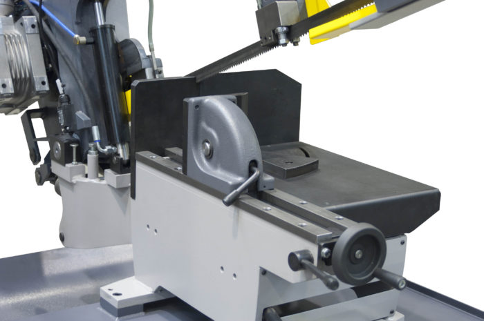 Materiał jest wkładany i zaciskany. Unowocześnione imadło umożliwia mocowanie materiału w różny sposób. Prędkość przecinarki taśmowej ustawia się na ergonomicznym panelu sterowania, znajdującym się z przodu urządzenia.