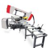 Zacisk materiału oraz posuw ramienia można sterować hydraulicznie, podawanie materiału jest ręczne. Cały cykl pracy zostanie przeprowadzony po naciśnięciu przycisku Start: materiał zostanie zaciśnięty, taśma przecinarki się uruchomi, cięcie zostanie wykonane, ramię konsoli obrotowej podniesie się do ustawionej pozycji domyślnej, a imadło się otworzy. Po przełączeniu urządzenia do pracy w trybie ręcznym, każdą z funkcji urządzenia można sterować odrębnie.