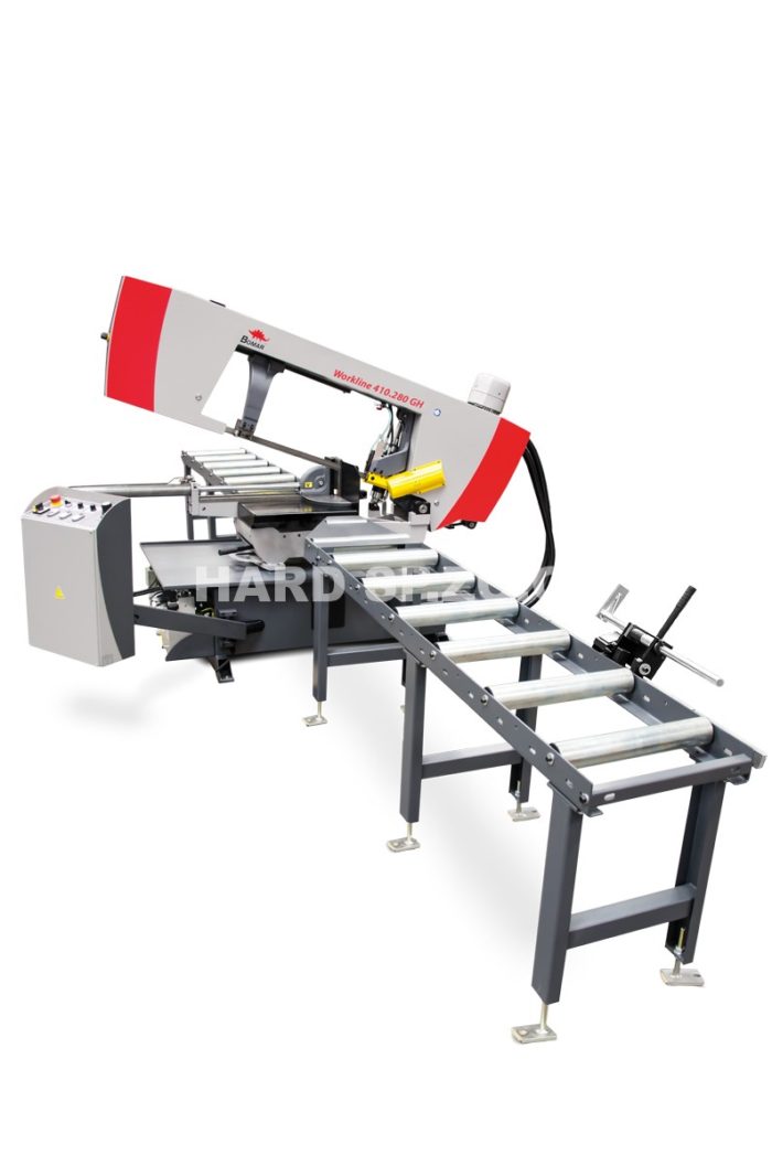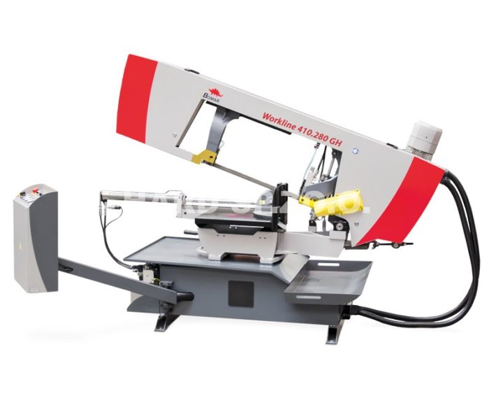 Workline 410.280 GH – półautomatyczna przecinarka taśmowa, przeznaczona do jednostronnych cięć ukośnych oraz do cięcia materiału o średnicy do 280 mm, zapewnia wysoką jakość przy dostępnej cenie.