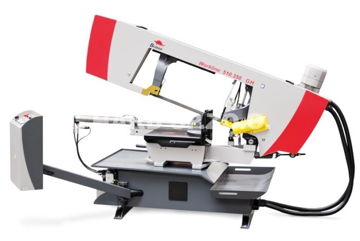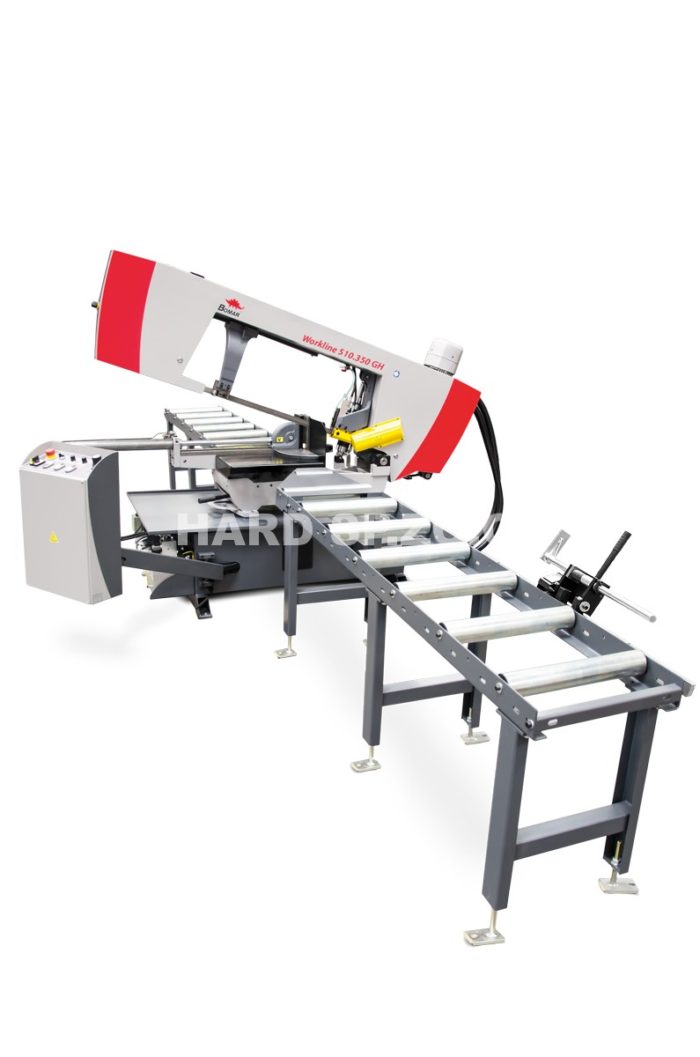 Workline 510.350 GH – półautomatyczna przecinarka taśmowa, przeznaczona do jednostronnych cięć ukośnych oraz do cięcia materiału o średnicy do 350 mm, zapewnia wysoką jakość przy dostępnej cenie.
