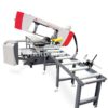 Zacisk materiału oraz posuw ramienia można sterować hydraulicznie, podawanie materiału jest ręczne. Cały cykl pracy zostanie przeprowadzony po naciśnięciu przycisku Start: materiał zostanie zaciśnięty, taśma przecinarki się uruchomi, cięcie zostanie wykonane, ramię konsoli obrotowej podniesie się do ustawionej pozycji domyślnej, a imadło się otworzy. Po przełączeniu urządzenia do pracy w trybie ręcznym, każdą z funkcji urządzenia można sterować odrębnie.